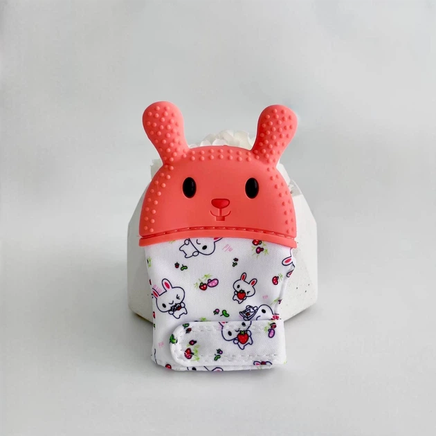 Рукавичка Зайчик (помаранчева), прорізувач для зубів