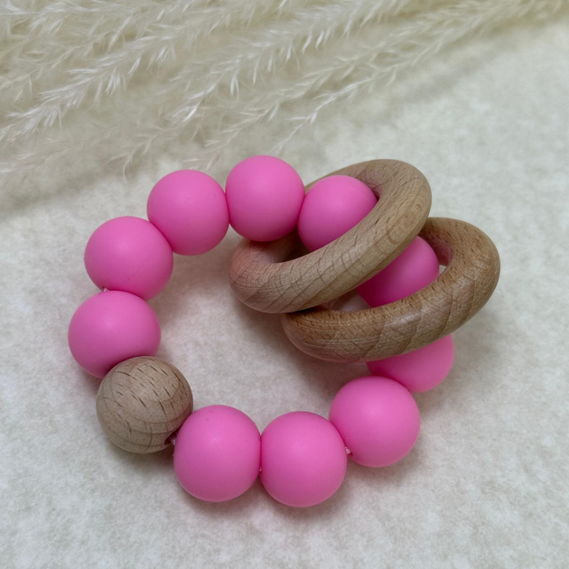 Гризунець прорізувач з харчового силікону з деревом для зубів кільце, Рожевий, 1 шт.