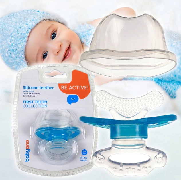 Прорізувач для зубів силіконовий охолоджуючий "Перші зубки" (блакитний) "BabyOno"