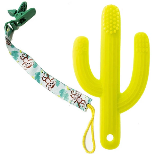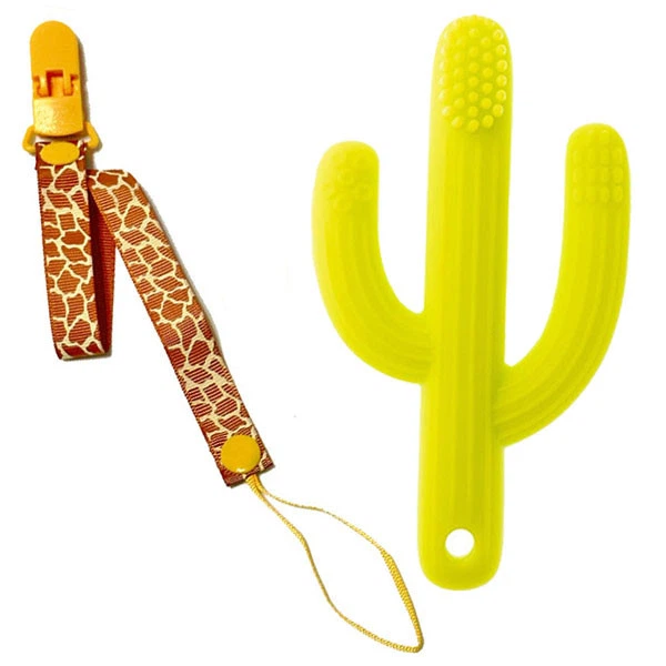 Комплект прорізувач для зубів 2Life Кактус та тримач Жовтий (vol-10320)