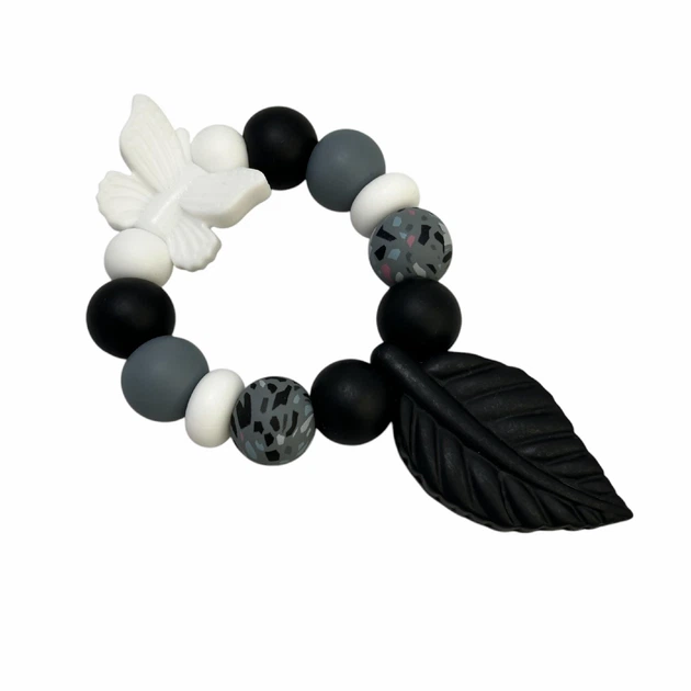 Гризунець прорізувач з харчового силікону з підвіскою для зубів Листочок, Чорний 1 шт.
