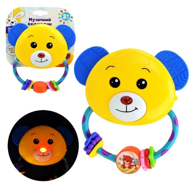 Брязкальце Ведмедик, музичний чіп, прорізувач, підсвітка, гра з кульками (0598)