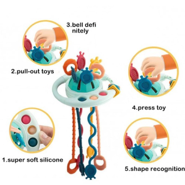 Логічна іграшка 2108 текстурне брязкальце прорізувач 4 в 1 Блакитне