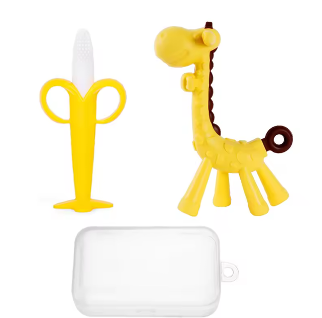 Набір силіконової щіточки для прорізування зубів Банан та прорізувач Жираф у футлярі