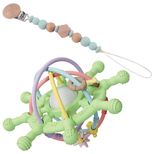 Набір 2Life Y3 Силіконовий прорізувач м'яч-абстракція та пластиковий утримувач намистини Зелений v-12764
