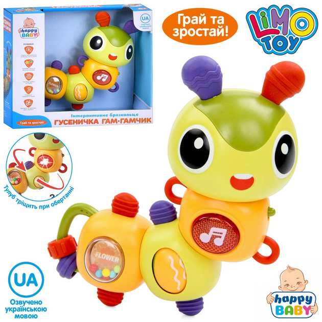Брязкальце гусінь, тріскачка, прорізувач зубів, вірші, світло, українська мова коробка 20-17-7 см