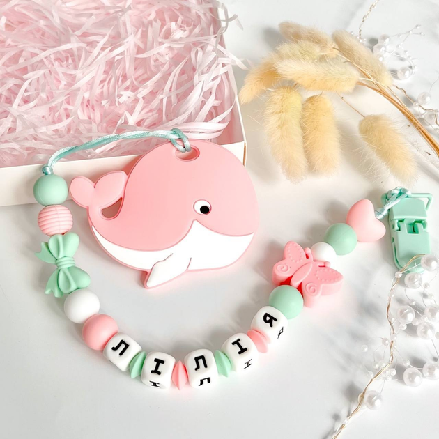 Іменний прорізувач для зубів (силіконовий) для дівчинки, Кит Троянда кварц