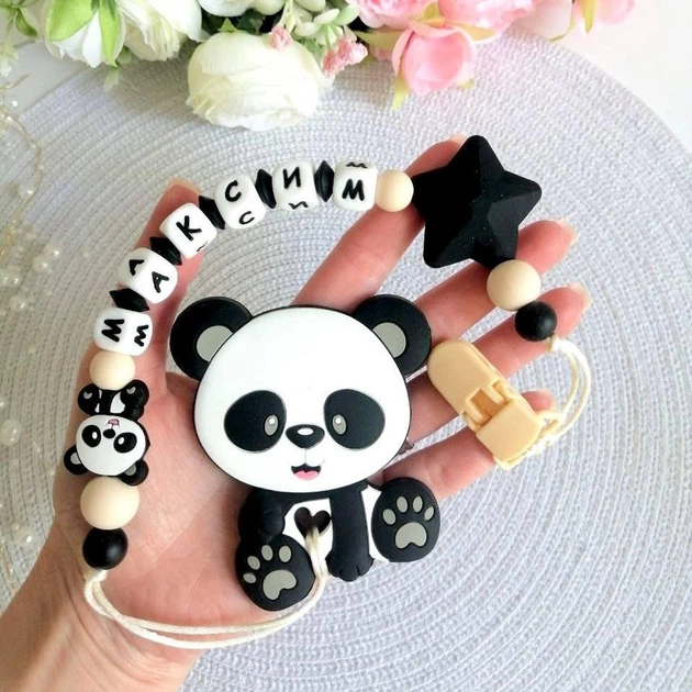 Іменний силіконовий гризунок для хлопчика, прорізувач для зубів, Панда сіра