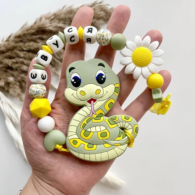 Іменний силіконовий гризунок, прорізувач для зубів Змія хакі