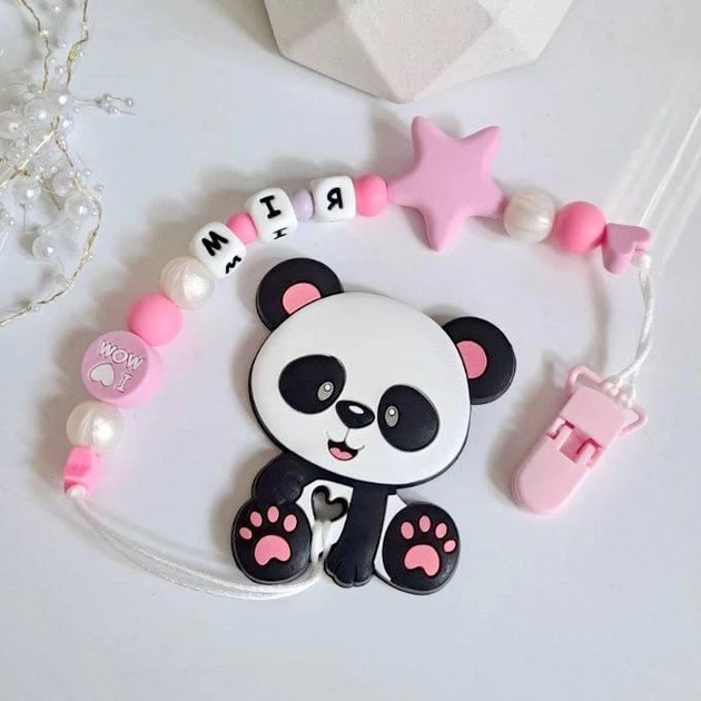 Іменний силіконовий гризунок для дівчинки, прорізувач для зубів, Панда (рожевий)