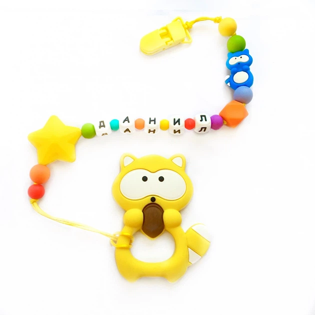 Іменний силіконовий гризунок для дівчинки, прорізувач для зубів, Лисичка помаранчева