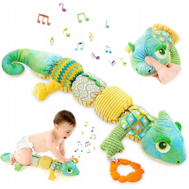 М`яке брязкальце Хамелеон, дзвіночок, шелесткі елементи, прорізувач, ростомір, зелений (C 64807)