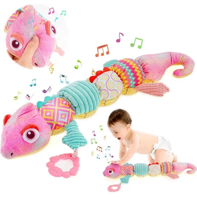 М`яке брязкальце Хамелеон, дзвіночок, шелесткі елементи, прорізувач, ростомір, рожевий (C 64806)