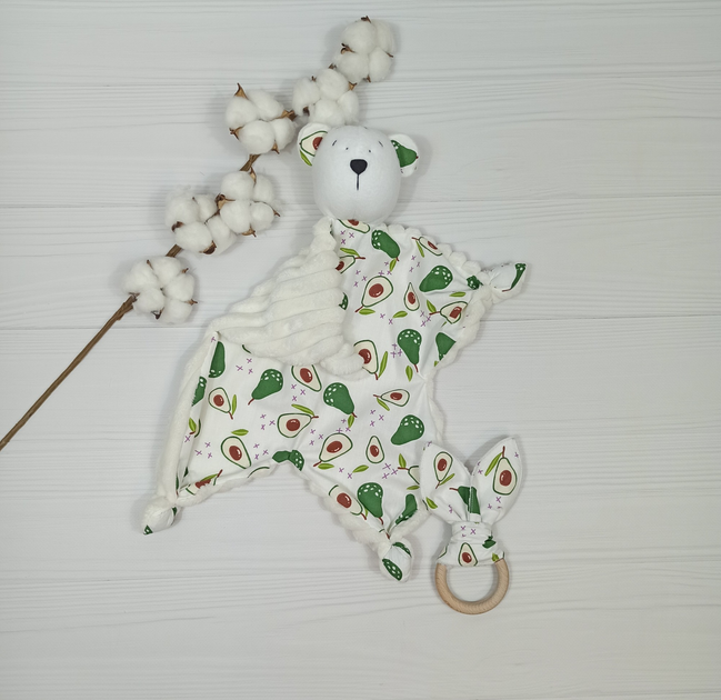 Іграшка комфортер Ведмедик і Еко гризунок Шурхітливі вушка a.l.babybox Авокадо Молочний
