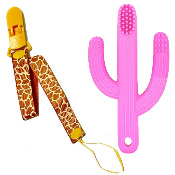 Прорізувач для зубів 2Life Кактус силікований Рожевий з тримачем