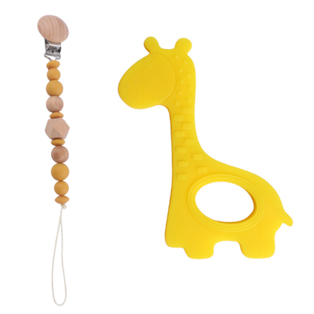 Набір силіконовий прорізувач Жираф з ланцюжком утримувачем силікон дерево Жовтий v-12754