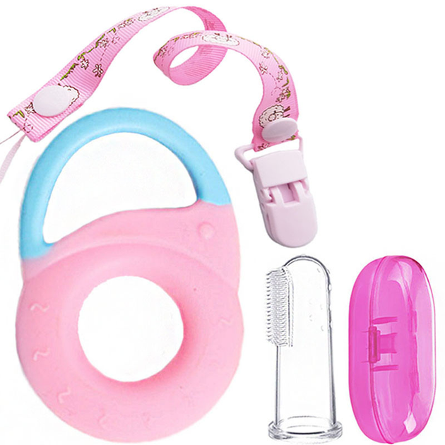 Комплект прорізувачів 2Life для зубів дитини Замочок Y4 щітка на палець в кейсі і тримач Рожевий v-11851