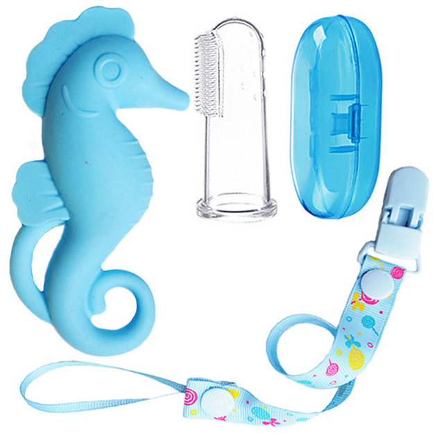 Комплект прорізувачів 2Life для зубів дитини Морський коник Y9 щітка на палець в кейсі тримач Блакитний v-11852