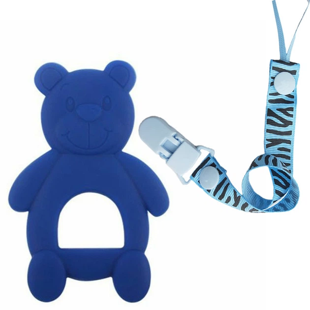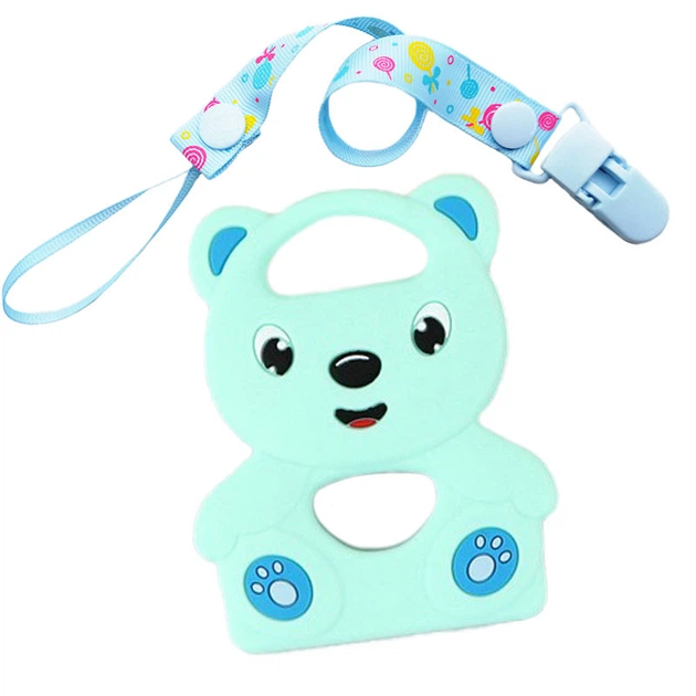Силіконовий прорізувач-іграшка для зубів дитини та тримач 2Life Ведмедик Y5 Блакитний (v-11636)