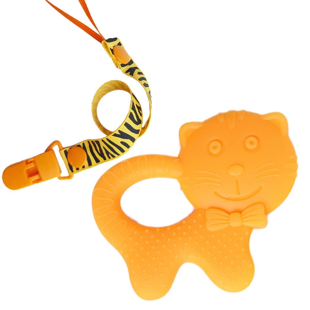 Силіконовий прорізувач-іграшка для зубів дитини та тримач 2Life Кіт Y25 Помаранчевий (v-11631)