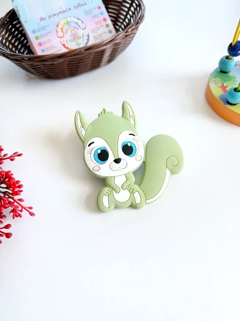 Силіконовий прорізувач, гризунець білочка, оливковий