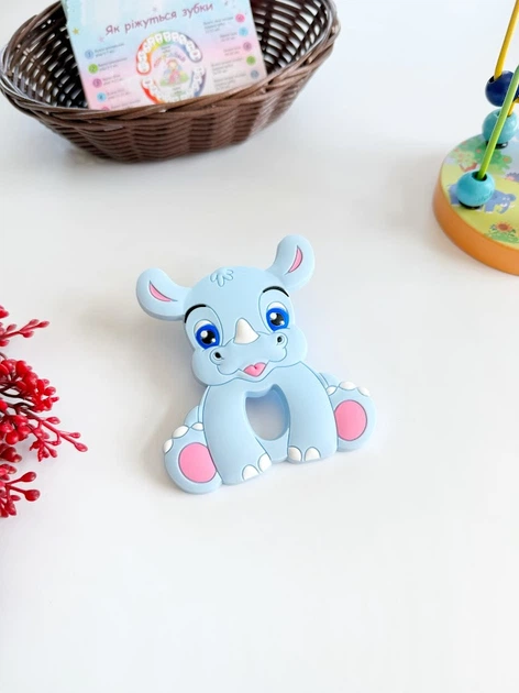 Силіконовий прорізувач, гризунець носоріг, блакитний