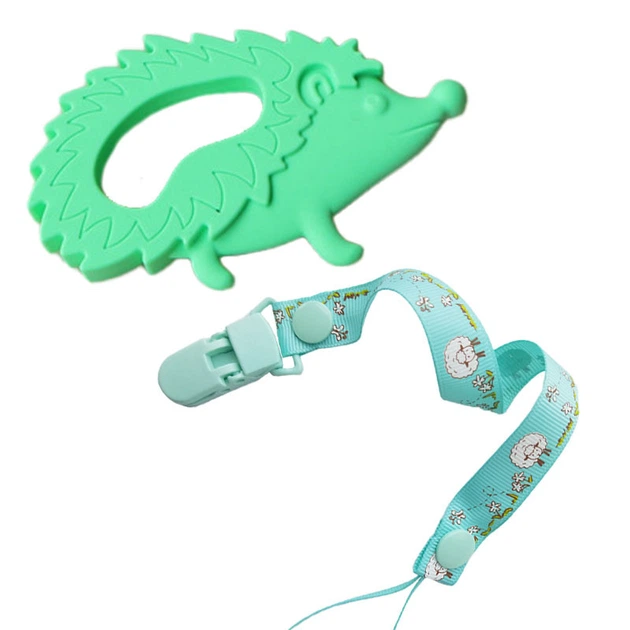 Силіконовий прорізувач-іграшка для зубів дитини та тримач 2Life Їжачок Y3 Зелений (v-11629)