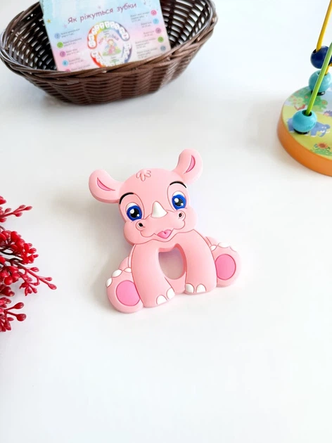 Силіконовий прорізувач, гризунець носоріг, рожевий