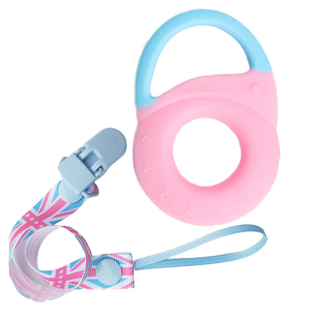 Силіконовий прорізувач-іграшка для зубів дитини та утримувач 2Life Замочок Y4 Рожевий (v-11633)