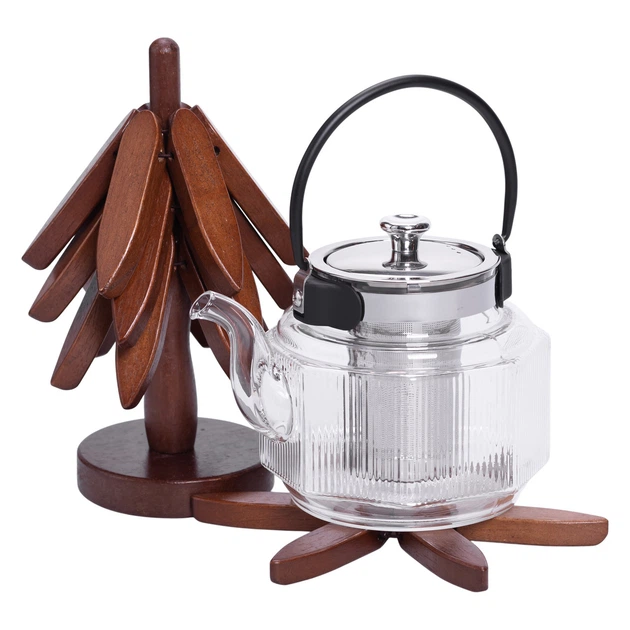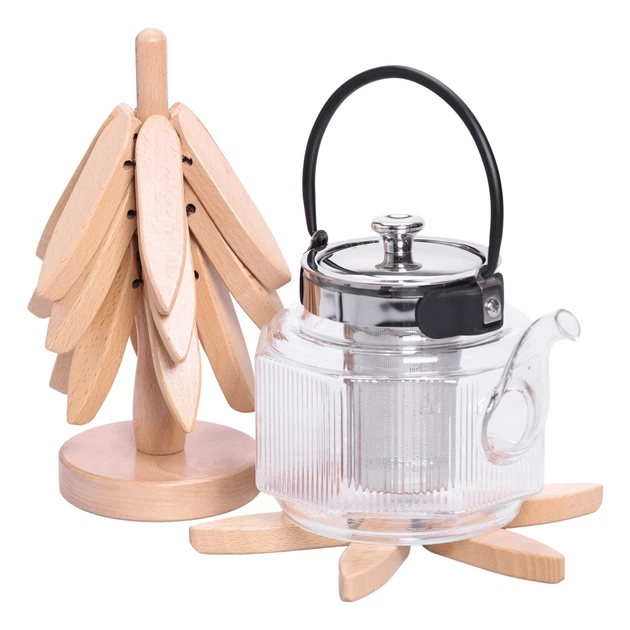 Набір дерев'яних підставок під гаряче 3 шт 19 см та тримач для підставок Yiwu HB-40-4BE