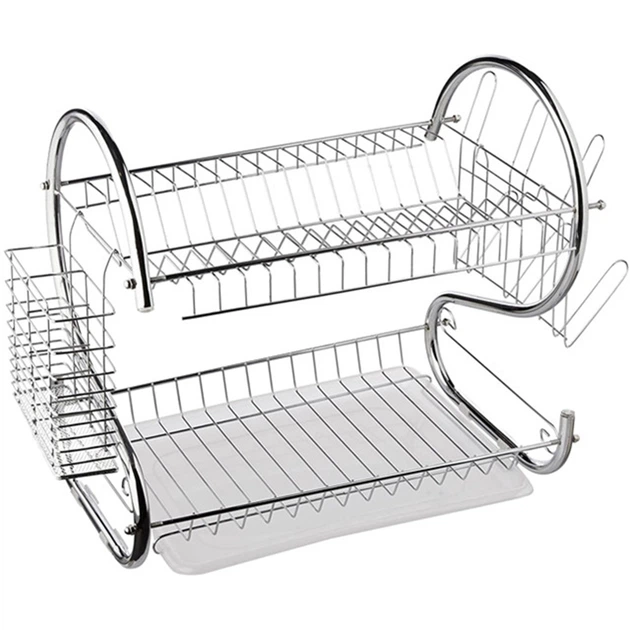 Двоярусна сушарка для посуду з піддоном настільна металева полиця органайзер підставка для сушіння посуду