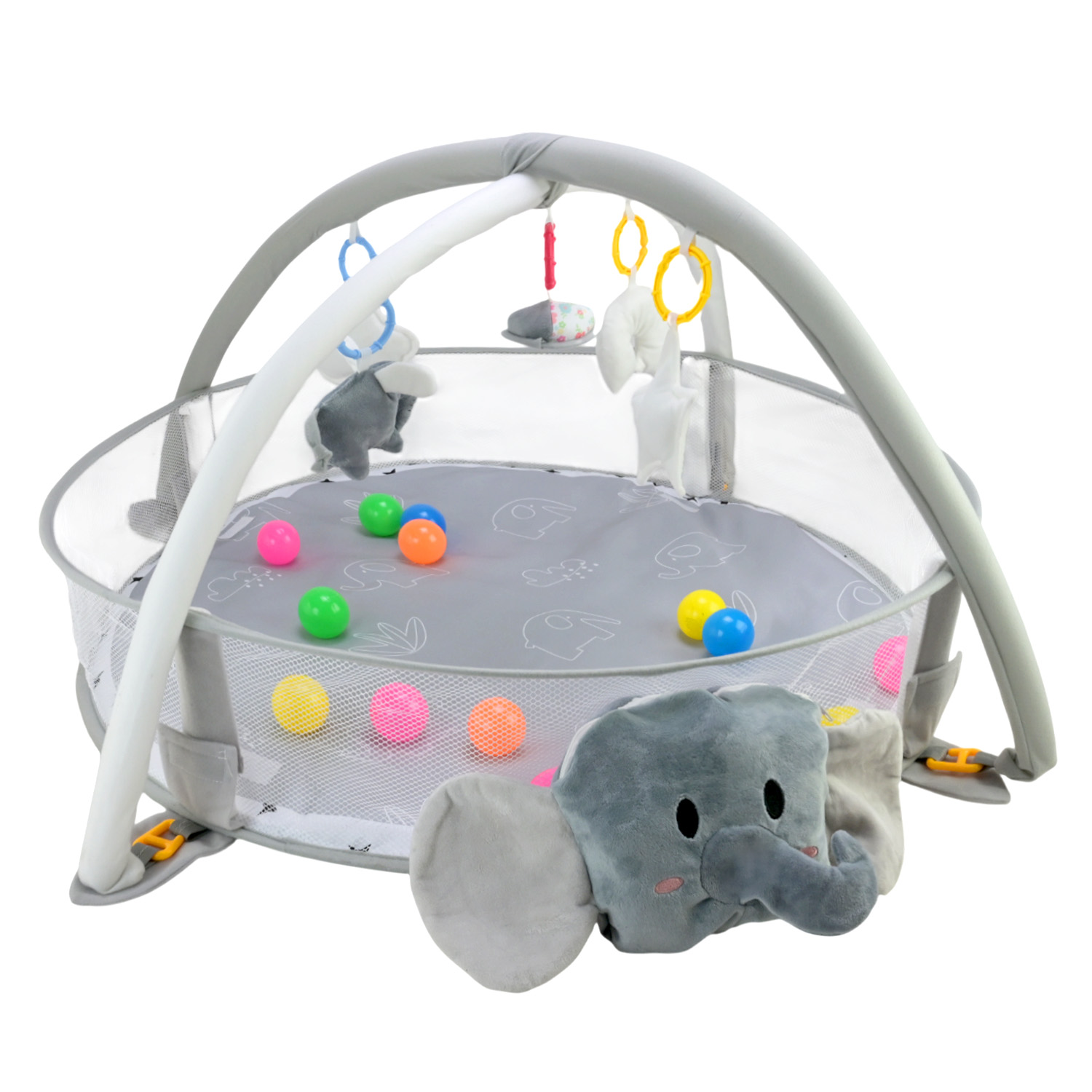 Ігровий килимок-манеж у привабливому оформлені з слоненям подарує малюкові яскраві емоції та комфорт під час гри! Він стане улюбленим місцем для гри, відпочинку та розвитку малюка. Яскравий дизайн, м’які матеріали та безпечна конструкція роблять його ідеальним для перших відкриттів та веселих ігор кожного дня. Комплектація: Килим; Бортик з кишенею для кульок; 2 дуги; 30 кульок;