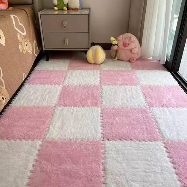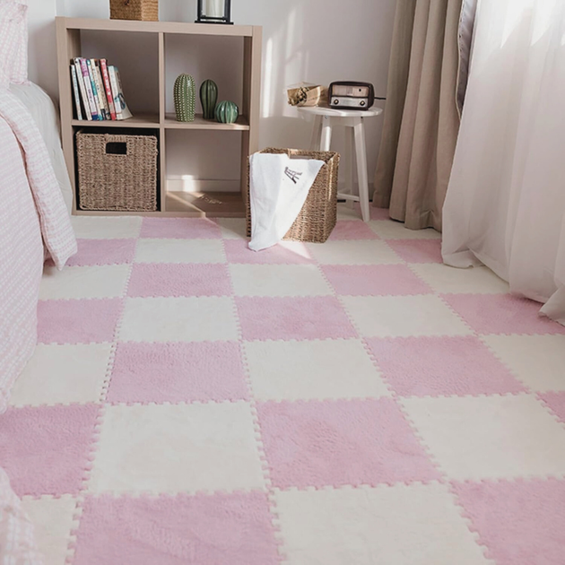 Килимок-пазл з плюшевим покриттям, термокилимок, мат дитячий, підлога-пазл теплий 60*90см (6 пазлів), колір рожевий