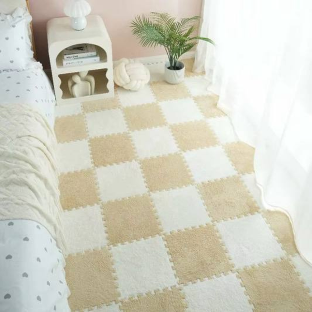 Килимок-пазл з плюшевим покриттям, термокилимок, мат дитячий, підлога-пазл теплий 60*90см (6 пазлів), колір бежевий