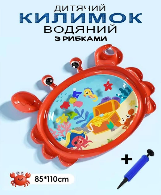 Дитячий килимок водяний надувний розвиваючий з рибками для малюків Краб акваковрик ігровий 85*110 см коврик з водою Water Ma