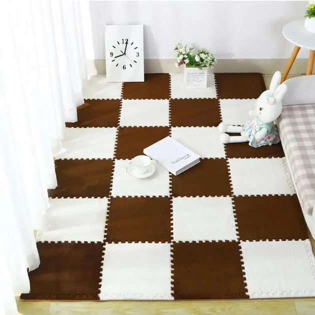 Килимок-пазл з плюшевим покриттям, термокилимок, мат дитячий, підлога-пазл теплий 60*90см (6 пазлів), колір коричневий