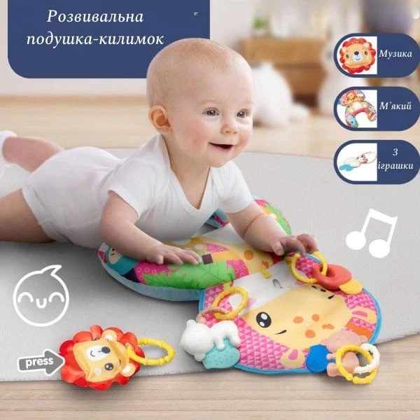 Розвиваюча подушка килимок 2 в 1 для малюка дитини новонароджених від 0 місяців Сolombokid м'який на підлогу з брязкальцями,