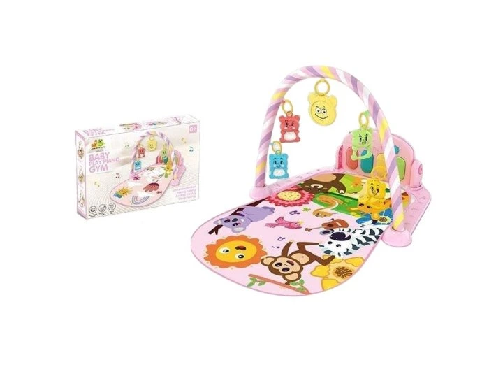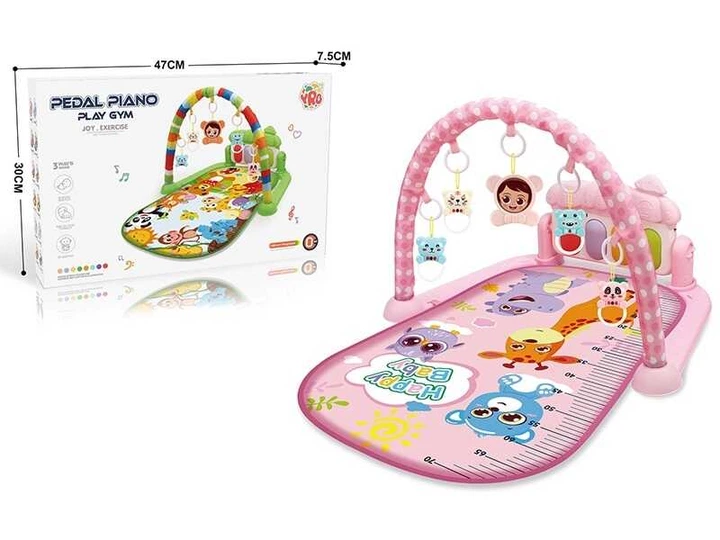 Дитячій розвиваючий килимок рожевого кольору з підвісними іграшками для новонароджених
