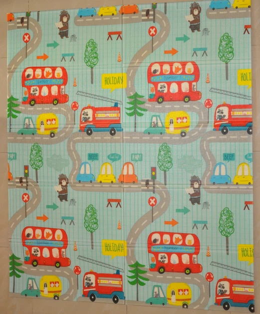 Термокилимок "Вагончик з тваринами - ростоміром" 1800*1200*8 мм Cумка в подарок ,двосторонній гіпоалергенний термо килимок д