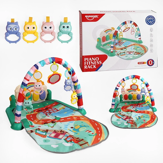 Килимок ігровий розвиваючий (підсвічування, мелодії, 5 підвісок, піаніно) Сова Red