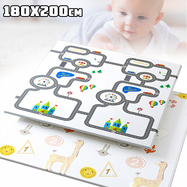 Дитячий ігровий килимок двосторонній вологовідштовхувальна поверхня Crawling Mat Тварини, паркінг 180х200см товщина 10мм