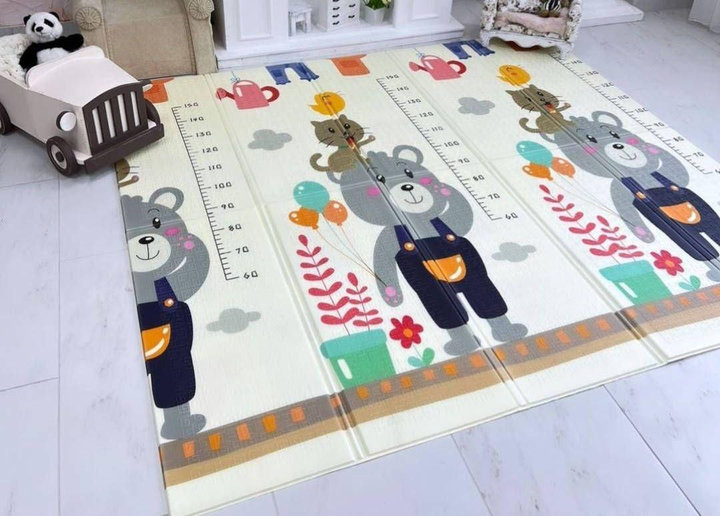 Дитячий термокилимок складаний MR 0586-2 двосторонній 150-180 см Зайчики-Панды