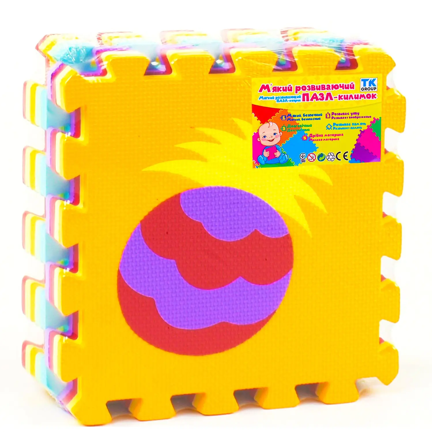 Вчимося граючи – запам'ятовувати назву іграшок так весело; - Гіпоалергенний матеріал EVA - виріб досить щільний і м'який, що запобігає контакту з холодною підлогою; - Компактний розмір - килимок складається з 9 деталей (32х32х1 см) зі знімними елементами, і не займе багато місця; - Приємні дотики – 6 різних текстур делікатно масажують шкіру, що покращує локальний обмін речовин Вік: 1 рік+ Розмір в упаковці: 32*32*9 см Виробник: Китай