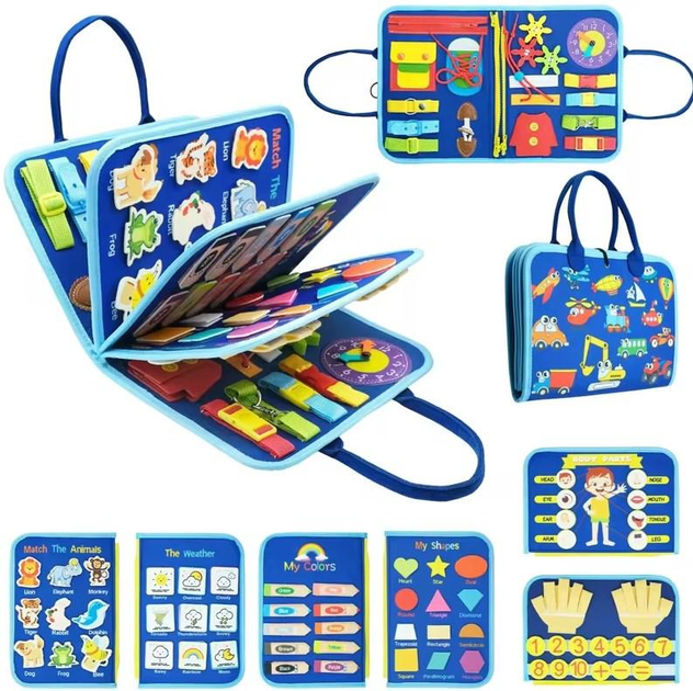 Монтессорі інтерактивна бізібук бізіборд книжка на липучках, блискавки, що розвиває дрібну моторику рук, пам'ять, увагу