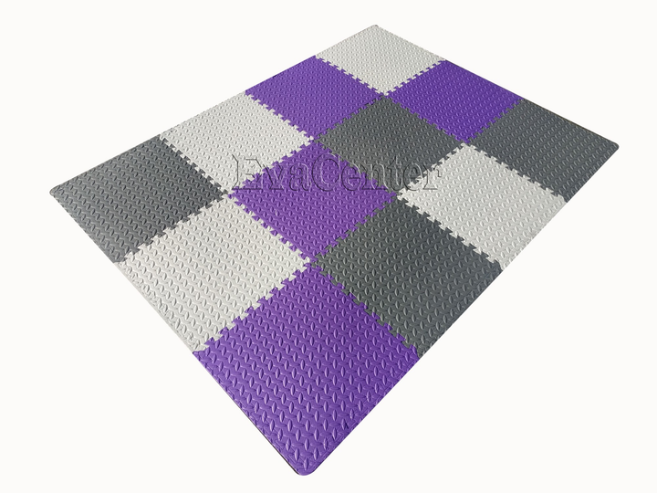 Килимок-пазл LN 2 м х1.5 м Фіолет-білий-сірий набір 12 шт