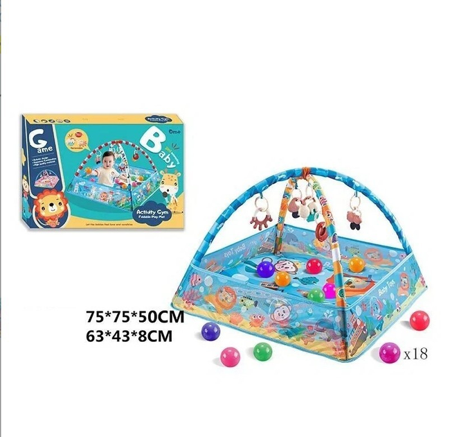 Килимок розвиваючий з дугою брязкальцями і піаніном світло звук блакитний (096)
