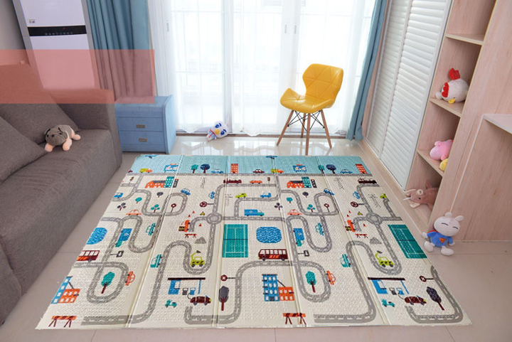 Якісний дитячий складний двосторонній розвиваючий термокилимок для повзання, розваг та ігор Дорога, 150*200*1,2