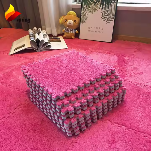 Підлога-пазл плюшевий 120x150см, 20 пазлів, тепла підлога, термокилимок для дому, дитячий мат, колір рожевий