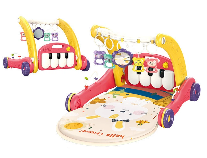 Розвивальний килимок 2 в 1 Каталка Ходунки з Піаніно Брязкальцями та Пальчиковими іграми Червоно-жовтий