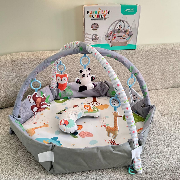 Дитячий килимок з м’якими бортиками, подушкою,розвиваючий кокон, Ігровий з брязкальцями. Манеж Для малюків та новонароджених